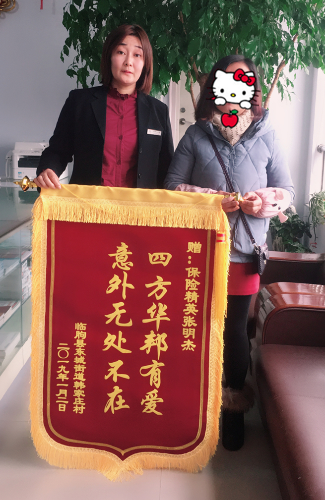 通過此次理賠事件,韓女士對保險有了更深刻的認(rèn)識,送錦旗的當(dāng)天就在公司職場為自己也購買了一份健康險,韓女士說,有了這部分款項(xiàng),她又鼓起生活的勇氣,放下悲痛,以更好的狀態(tài)贍養(yǎng)老人撫養(yǎng)兒女成人。