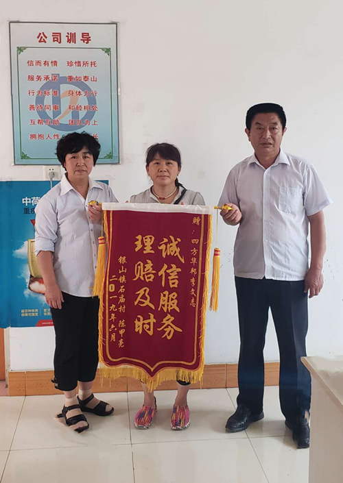 客戶收到理賠款后非常高興,逢人就說“沒想到只花費了100元,保險公司就報銷這么多,四方華邦保險服務就是好,買保險一定得去四方華邦保險”。為表達感激之情,客戶今天特意制作了錦旗以表感謝!