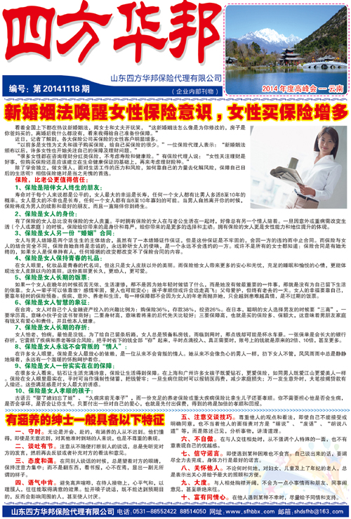 版權(quán)所有 :山東四方華邦保險(xiǎn)代理有限公司 地址:山東省濟(jì)南市山大路大舜天成2號(hào)樓502