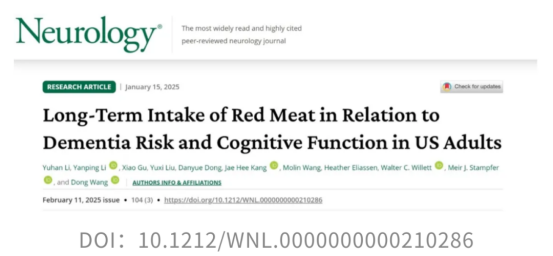 來自哈佛大學(xué)的研究團(tuán)隊(duì)在Neurology發(fā)表的一項(xiàng)研究[2]通過分析護(hù)士健康研究(NHS)和健康專業(yè)人員隨訪研究(HPFS)兩項(xiàng)大型前瞻性隊(duì)列研究的數(shù)據(jù),探討了紅肉攝入與多個(gè)認(rèn)知結(jié)果之間的關(guān)聯(lián)。